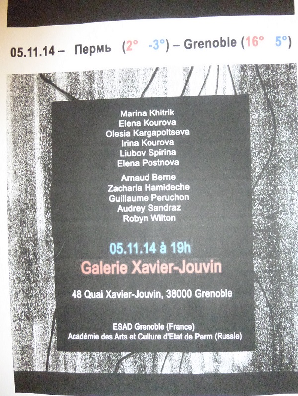 Du 25 octobre au 10 novembre 2014, cinq étudiantes de l’Académie des Arts et de la Culture d’Etat de Perm (AAC) ont été accueillies à l’Ecole Supérieure d’Art et Design Grenoble – Valence (ESAD). En tant que l’association, nous sommes heureux d’avoir aidé à organiser ce projet d’échange.