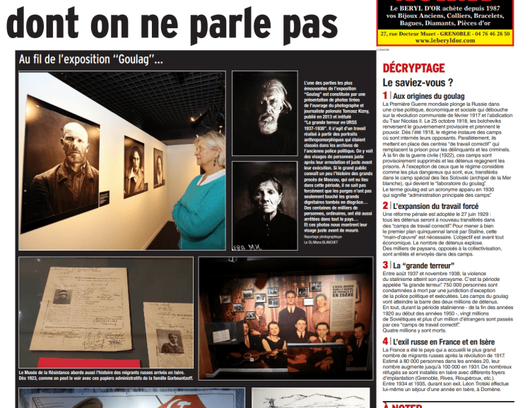 Le Musée de la Résistance et de la Déportation de l’Isère – Maison des Droits de l’Homme était le premier musée en France à dédier une exposition au système de travail forcé soviétique. Et nous, en tant qu’association, sommes fiers d’avoir été partenaire et d’avoir contribué à son organisation. C’était un projet qui nous tenait particulièrement à cœur depuis notre première rencontre avec Tatiana Kursina, ex-directrice du Centre mémorial Perm-36, en 2011 en Russie.