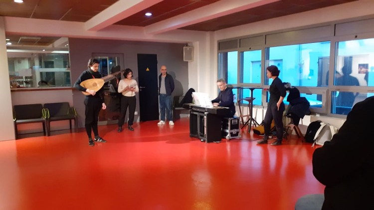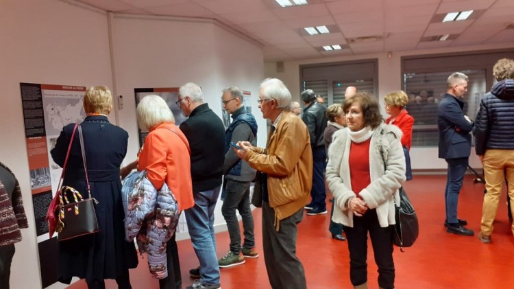 Le vernissage de l’exposition a eu lieu le jeudi 16 mars à 18h en présence de Armelle LE BOURDONNEC, Adjointe en charge de la culture et du devoir de mémoire, suivie par le groupe d’artistes « Dans un train ».